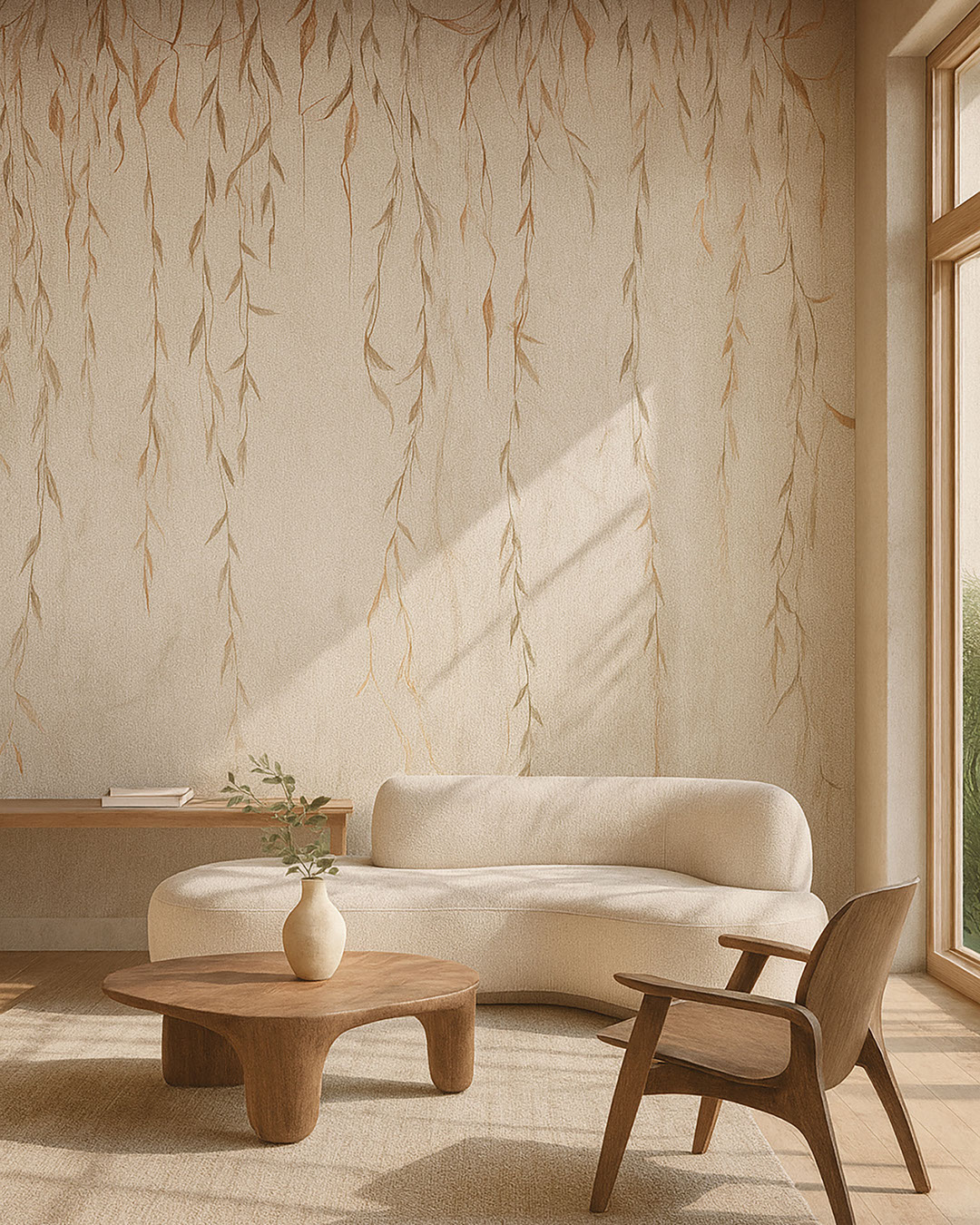 Lynora porta una sensazione di leggerezza grazie ai suoi rami ricadenti disegnati in toni naturali e delicati. Il ritmo morbido del motivo suggerisce un movimento calmo, ideale per camere da letto, angoli relax o soggiorni luminosi. Lynora si abbina perfettamente ai tessuti in lino, al legno chiaro e alle forme morbide e arrotondate dei mobili. È particolarmente adatta a interni in stile wabi-sabi o scandinavo, dove contano silenzio e autenticità. Il design rinfresca lo spazio mantenendo un carattere sobrio e raffinato.