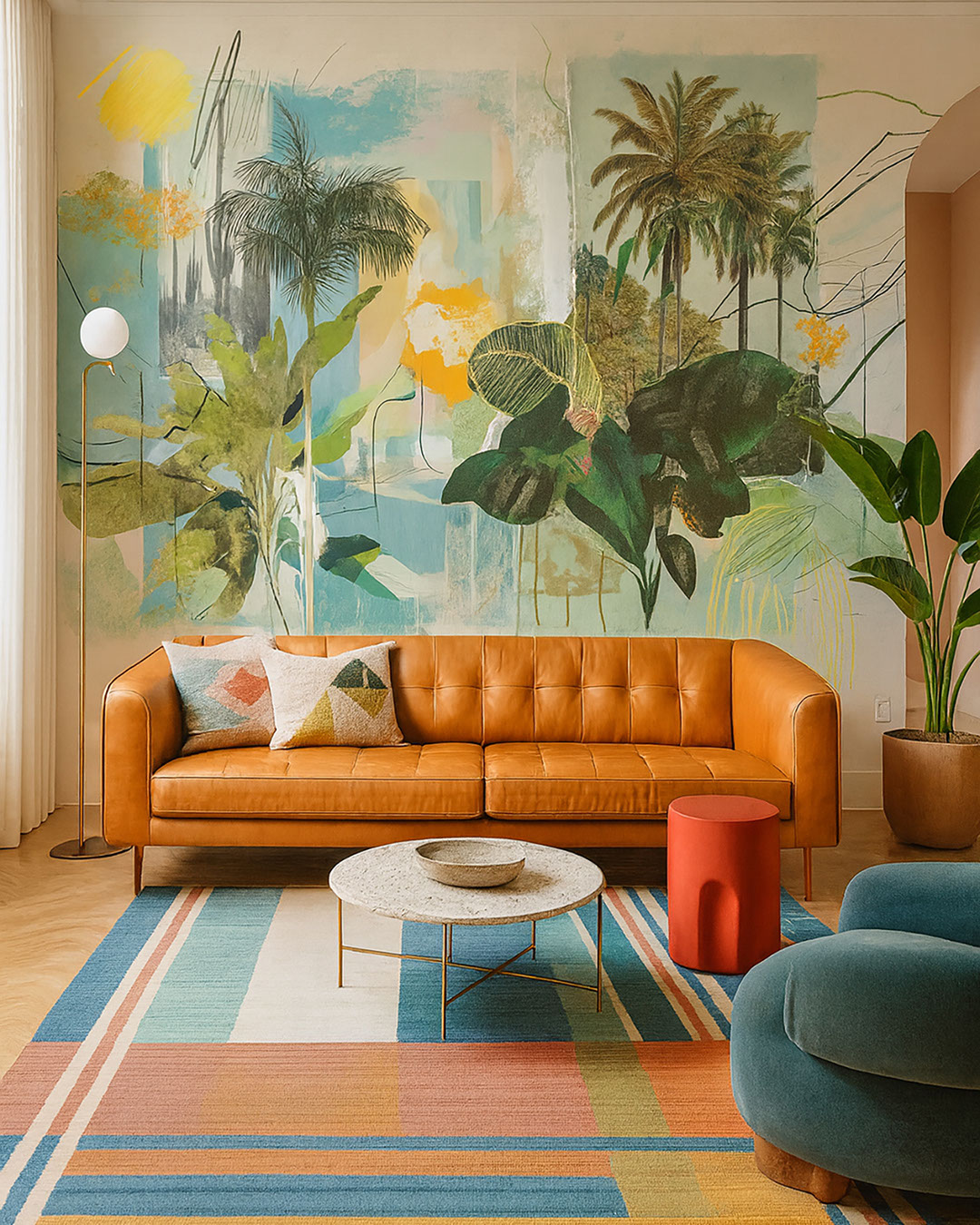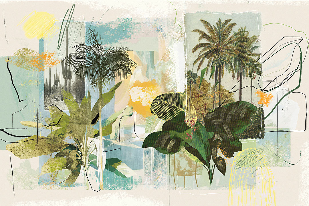 Arecella unisce vegetazione tropicale rigogliosa, texture collage e tratti astratti espressivi in una composizione vivace e stratificata. I toni pastello si fondono con accenti di giallo, turchese e verde, mentre frammenti botanici vintage aggiungono profondità e carattere artistico. Questa carta da parati è ideale per interni moderni, studi creativi o ambienti che cercano freschezza e un’atmosfera tropicale luminosa. Arecella si abbina perfettamente al legno chiaro, alle fibre naturali, ai tessuti in lino e all’arredo minimalista. Con luce calda o naturale, la composizione prende vita creando l’effetto di un’installazione artistica.