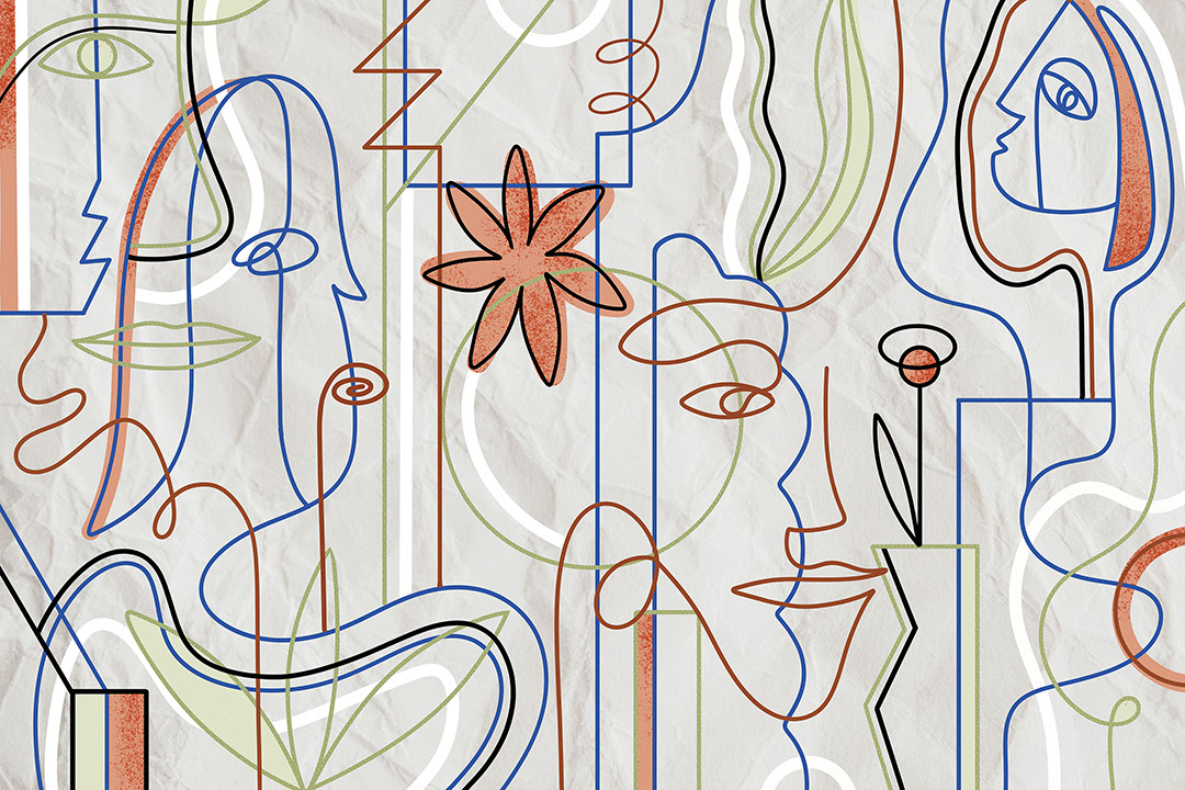 Carta da parati volti astratti lineari su sfondo chiaro testurizzato